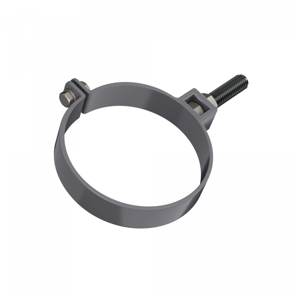 Хомут трубы ТЕХНОНИКОЛЬ ПВХ универсальный серый – элемент водосточной системы, которая устанавливается на скатных кровлях. Используется, чтобы закрепить трубу на нужном расстоянии от фасада. Размер – 180 мм.